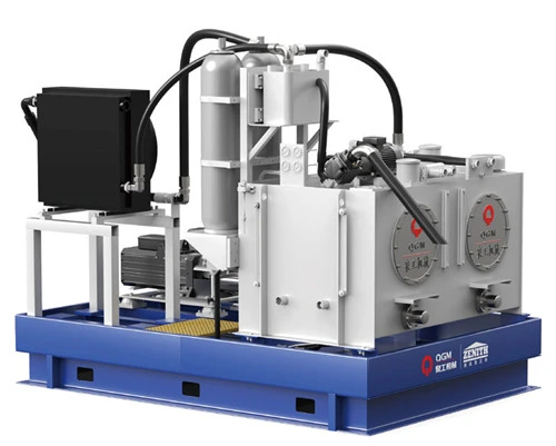 gibanje. Hidravlična postaja uporablja batno črpalko s spremenljivo prostornino, ki se ustavi