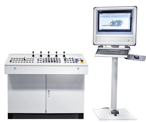 Tlačna glava, okvir kalupa, voz za agregate in voz za tkanine so pod nadzorom. Krmilna glava, okvir kalupa, podajalna škatla za osnovno mešanico in obrazno mešanico so pod nadzorom