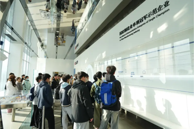 Vstop v Quangong Machinery Co., Ltd.Razstavišče zgodovine razvoja je serija dragocenih starih fotografij in zgodovinskih modelov opreme opisala pot podjetja od ustanovitve leta 1979 do danes. Od svojih začetkov kot majhna tovarna komunalnih inženirskih strojev do trenutnega statusa merila v industriji s čezmorskimi podružnicami, kot je Zenith v Nemčiji, in številnimi priznanji, vključno s tem, da je med prvimi skupinami »China Manufacturing Single Champion Demonstration Enterprises«, priznanih s strani Ministrstva za industrijo in informacijsko tehnologijo, je pot rasti podjetja Quangong Machinery Co., Ltd. omogočila fakulteti in študentom, da so se globoko cenite predanost in inovativnost v ozadju poslovne filozofije »kakovost določa vrednost, strokovnost gradi uspeh«. Vodnik podjetja je podrobno razložil tehnološke preboje in ponovitve izdelkov na vsaki stopnji razvoja. Ob omembi prelomnih dogodkov, kot je razvoj prvega "popolnoma avtomatskega večdelnega stroja za izdelavo opeke" na Kitajskem leta 2000 in prvega domačega stroja za suho malto leta 2004, je občinstvo pogosto izrazilo občudovanje, kar je študentom omogočilo jasnejše razumevanje razvojne poti inteligentne proizvodne industrije.
