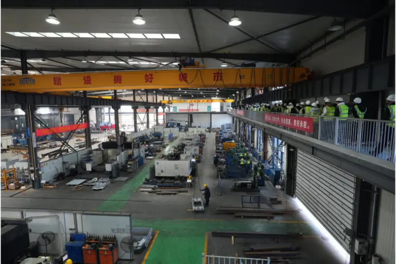 Nato so si učitelji in učenci ogledali delavnico strojne obdelave in vstopili v prve bojne vrste inteligentne proizvodnje. V delavnici so CNC obdelovalni centri in avtomatizirane montažne linije delovale z veliko hitrostjo, robotske roke so natančno dokončale različne operacije, digitalni proizvodni sistem pa je v realnem času prikazoval napredek proizvodnje in podatke o spremljanju kakovosti, kar je dokazovalo sinergijski učinek »zelene tovarne« in »inteligentne delavnice«. Tehnični strokovnjaki podjetja so učitelje in študente vodili skozi celoten proces od predelave surovin do sestavljanja opreme, s poudarkom na razlagi uporabe ključnih tehnologij, kot je medsebojno povezovanje CNC opreme in natančno zaznavanje statusa proizvodnje. Študenti so aktivno sodelovali s tehničnimi strokovnjaki, razpravljali o vprašanjih, kot so optimizacija obdelave in tehnike vzdrževanja opreme, ter ustvarili močno učno vzdušje na mestu.