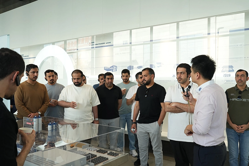 V nadzornem centru Intelligent Equipment Cloud Service Platform je delegacija opazovala scenarij pametnega delovanja in vzdrževanja, ki prikazuje, kako je mogoče opremo nadzorovati na daljavo. Kot osrednja inovacija podjetja Quanzhou Machinery ta platforma združuje vrhunske tehnologije, kot so računalništvo v oblaku, veliki podatki in umetna inteligenca. Zbira lahko operativne podatke v realnem času iz več kot 1.000 enot inteligentne opreme po vsem svetu, kar omogoča funkcije upravljanja celotnega življenjskega cikla, vključno s spletnim spremljanjem, nadgradnjami na daljavo, napovedovanjem in diagnozo napak ter oceno stanja opreme. Člani delegacije so se pozanimali o primerih uporabe platforme in hitrosti odziva storitev na Bližnjem vzhodu, pri čemer so zelo pohvalili njene učinkovite in poceni rešitve za delovanje in vzdrževanje za čezmorske stranke. Verjeli so, da ta tehnologija popolnoma izpolnjuje povpraševanje infrastrukturnega sektorja ZAE po inteligentni in učinkoviti opremi.